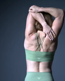 Cross-back shoulder straps, big U collar, full support, removable padding.